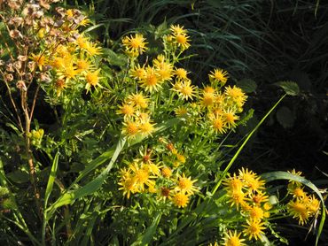 Brambles, Primrose, Herb Robert, Greater willow-herb, Rosebay willow-herb, Forget-me-not, Ivy leaved toadflax, Sycamore Oak, Birch, Goosegrass, Nettles, Maidenhaired spleenwort, Ragwort, Dandelion, Sessile oak, Red campion, Meadow buttercup, Grass, Monbrecia, Forget-me-not, Geranium, Speedwell